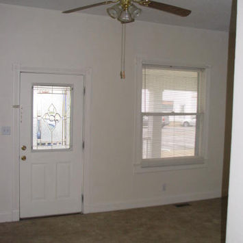 In 4-Plex: First floor, 1 bedroom, 1 bath with tub/shower, large living room, eat-in kitchen with Shaker style custom oak cabinets, bath with tub/shower, central heat/air, laundry connections, ceiling fan, storm cellar, off-street parking in rear, large front porch.