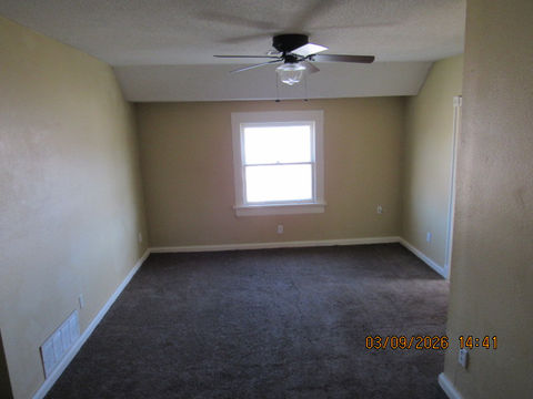 In 4-Plex: Second floor, 4 bedrooms 2 bath (1 with tub/shower, 1 with shower), eat-in kitchen, laundry connections, shaker style custom oak kitchen cabinets, deck off rear, central heat/air, ceiling fan, access to storm cellar, off street parking in rear.